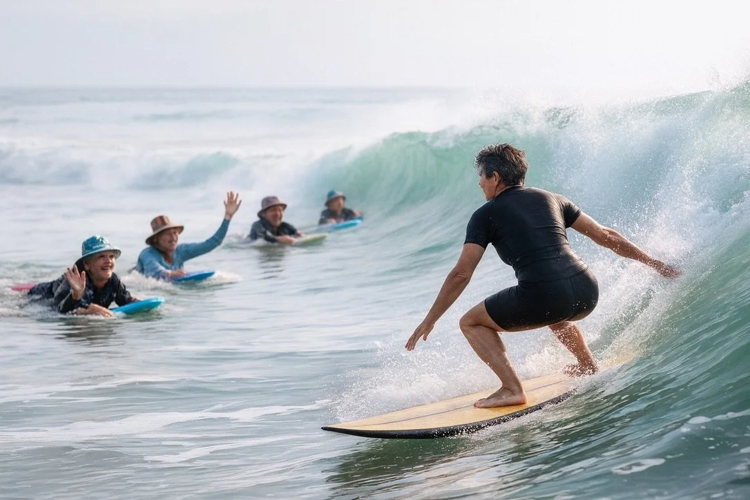 The Wave Chasers are women who return to the ocean again and again — regardless of age, circumstance or stressors. They are exceptional individuals, those who understand how play is necessary to keep that child within us satisfied - by sharing waves and laughs, and the tough stuff too.